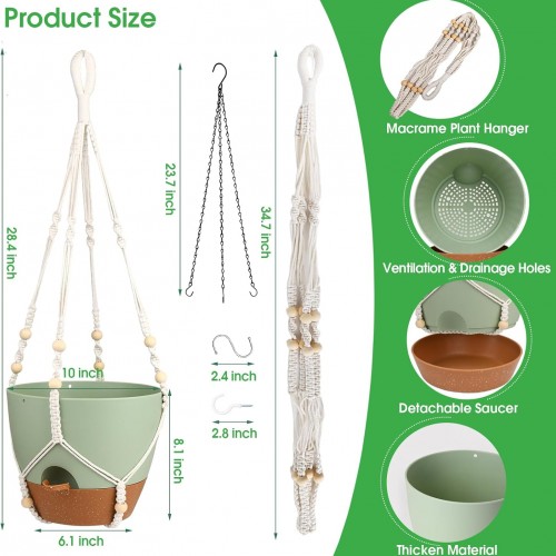 - Package Includes: 10 inch Hanging planters set of 2 include 2 pack 10 inch plant pots, 2pcs macrame plant hanger, 2pcs sturdy metal hanger and 4pcs hooks. Please note: No plants included.