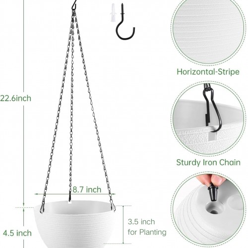 - Kvetto hanging planter features a minimalist and elegant horizontal stripe texture, equipped with isolation-plate, 20″ metal chain, screw-in hook and plug for drainage hole