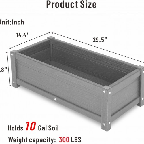 HDPE Raised Planter Box Outdoor,Rot-Resistant and Non-Cracking,Raised Beds for Gardening 29.5 * 14.4 * 9.8 in for Yard,Lawn,Outdoor Planter Boxes Rectangle with Drainage Holes Gray