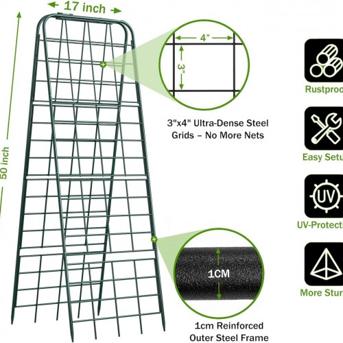 Heavy Duty 50″x17″ Adjustable A-Frame Trellis for Climbing Plants – Rust-Proof Metal Garden Trellis with Dense Grid Design, Perfect for Raised Beds, Tomatoes, Cucumbers & Outdoor Vines (Green, 1 Pcs)