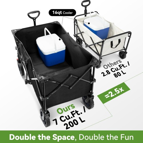 Hikenture 330lbs Collapsible Wagon Cart, Ultra-Large Wagons Carts Foldable Heavy Duty, Utility All Terrain Folding Wagon with Wheels for Groceries, Garden, Sports, Beach, Shopping, Black