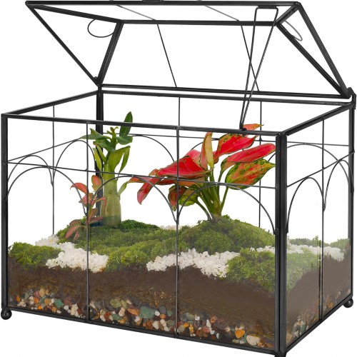 - Terrarium kit and 10 live plants each growing in a 2″ pot, varieties sent will vary