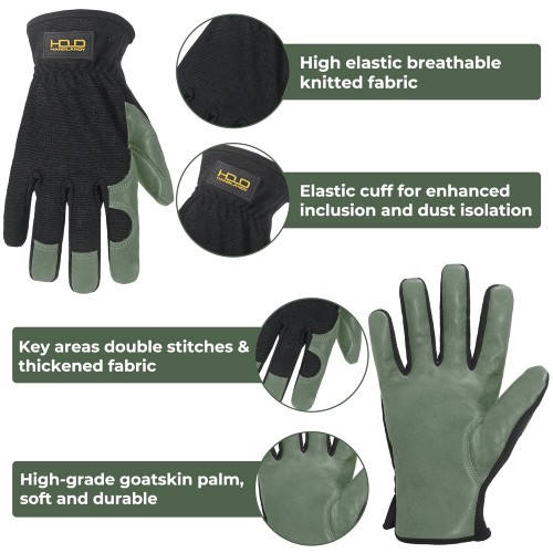 HLDD HANDLANDY Garden Gloves Men, Leather Utility Work Gloves for Gardening, Yardwork, Construction, Mechanics with Reinforced Palm, Green XL