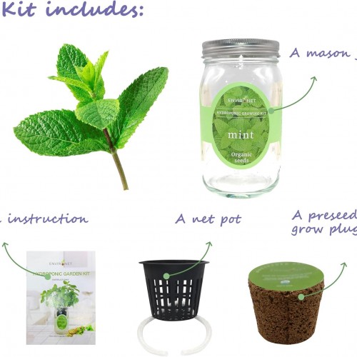- Mint Plants for Indoors Kit Includes: One net pot(with wick), one preseeded grow plug and one mason jar. Plant food is not included in this small mint plant for sale kit due to regulations. Recommend liquid plant food for vegetables available on Amazon.
