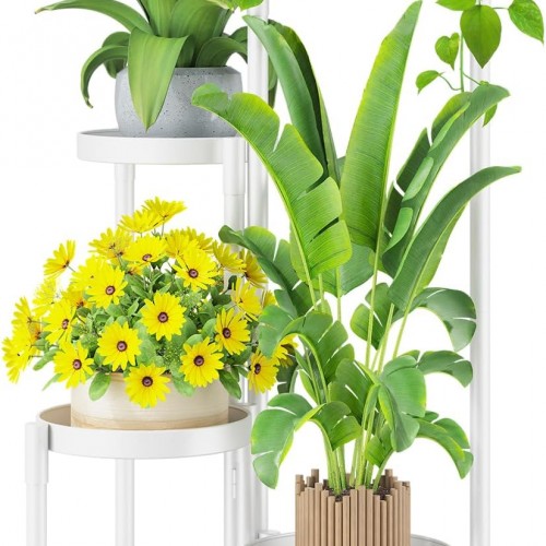 iDavosic.ly Plant Stand Indoor Outdoor, 6 Tier Corner Metal Flower Display Holder Shelf, Folding Tall Orchid Rack for Patio Balcony Porch Garden Living Room House, Wrought Iron – Modern Black