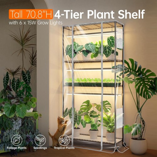 - 4-Tier Indoor Greenhouse with Grow Lights – This green house measures 35.4 inches long x 13.8 inches wide x 70.8 inches high, providing ample space for your plants. With a total weight capacity of 352 pounds, it’s perfect for accommodating larger plants, tropical varieties, monstera, microgreens, seedlings, and flowers during the cold winter months