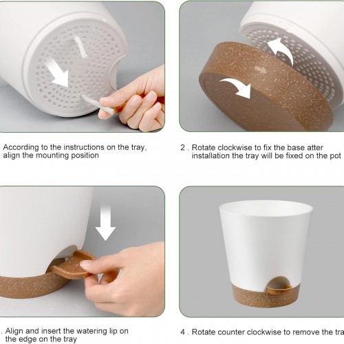 Indoor Self Watering Planters with Drainage Holes and Saucers, 8, 7, 6.5, 6, 5.5, 5 Inches, White, 6 Pots