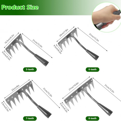 Iron Weeding Rake 2.0, New 5/6/7/8 Garden Weeder Rakes, Heavy Duty Yard Rake Hand Weeder Puller Tool for Efficient Weed Removal, Soil Cultivation, and Lawn Care, Without Stick (8 Teeth)