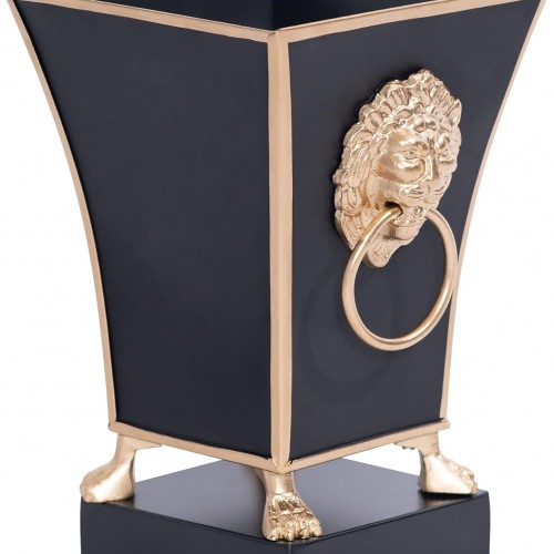 - Print & Pattern | The Regency Line by Jaye’s Studio unveils the Black Paws & Claws Hand-Painted Square Cachepot Planter – a phenomenal inclusion to elevate any living space. The striking black and gold design features a textured gold lion’s head and handle, exuding opulence and refinement. Its commanding presence creates an undeniable allure, instantly captivating attention in any room. The cachepot is adorned with a gold trim, while the gold ball feet deliver the perfect finishing touch.