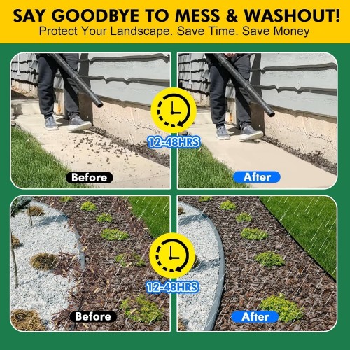 - ✅【INDUSTRIAL STRENGTH ADHESION FOR HARSH WEATHER】10X stronger bonding with a premium formula developed in collaboration with a mulch glue manufacturer that supplies government landscaping projects. Tested through extreme weather, effectively locking mulch in place and preventing erosion, washouts, or displacement caused by wind, rain, foot traffic- even leaf blowers. UV-resistant to preserve color and protect against sun. Keeps mulch locked in and your garden neat all season long.