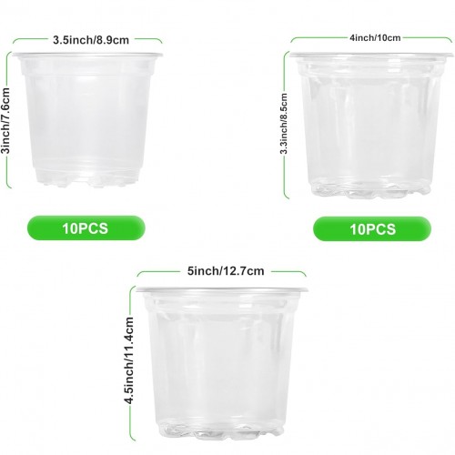JERIA 30 Pack 5/4/3.5 Inch Clear Nursery Pots with Drainage Holes, Clear Plant Pot for Planting, Transparent Plastic Plant Pots,Durable Seed Starting Pot for Succulents