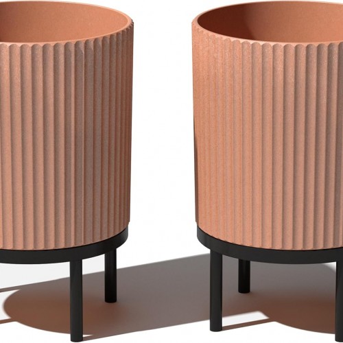 Kante 14 Inch Dia Round Concrete Planter, Indoor Outdoor Large Plant Pot with Drainage Hole and Rubber Plug for Home Patio Garden, Light Gray
