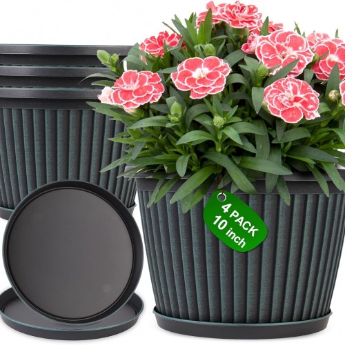 Kante 14 Inch Dia Round Concrete Planter, Indoor Outdoor Large Plant Pot with Drainage Hole and Rubber Plug for Home Patio Garden, Light Gray