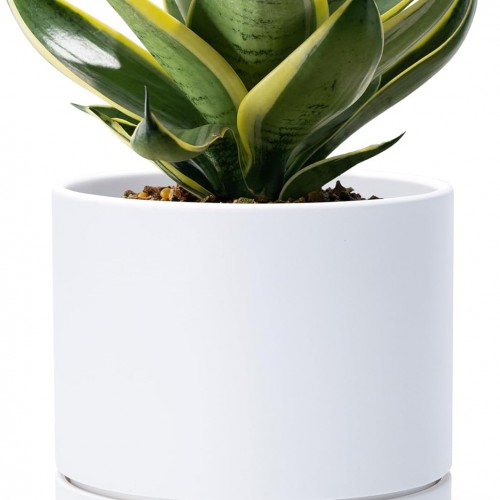 Kante 15.3″ Dia Round Concrete Planter, Outdoor Indoor Large Plant Pots Containers with Drainage Hole and Rubber Plug for Home Garden Patio, Light Gray