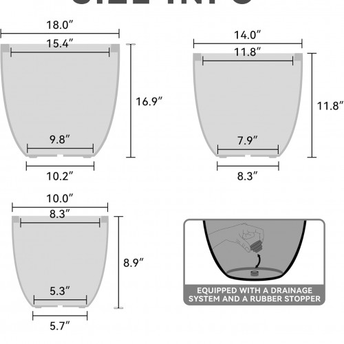 Kante 18″,14″,10″ Dia Concrete Round Planters (Set of 3), Outdoor Indoor Large Planter Pots with Drainage Hole for Home Patio Garden, Pure White