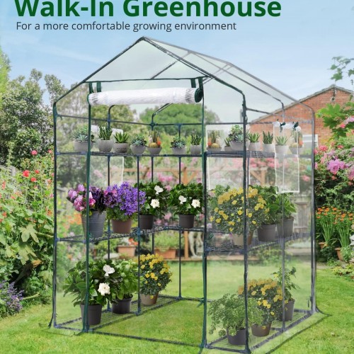 - [Zipper Mesh Door and Screen Windows]–The roll-up door and 3 mesh windows help to control the temperature and humidity when weather changes. The walk-in greenhouse can maintain higher temperatures when fully closed, and cool down by rolling up all windows and door.
