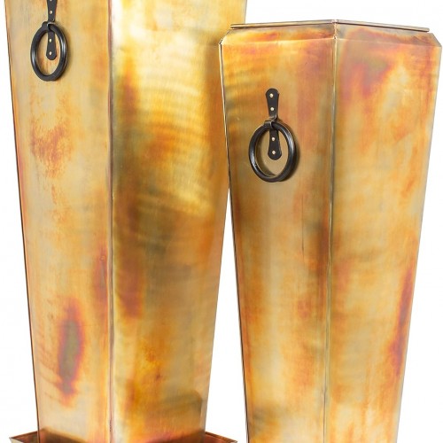 KOL 18”H. Bright Glazed Planter with Drainage Hole, Set of 2, Galvanized Steel Planter Pots for Indoor & Outdoor Use, Decorative Flower Plant Pots for Front Porch, Patio, Deck – Green