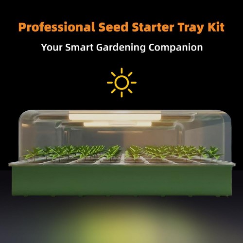KSONE Seed Starter Tray Kit with Warming Light Strip 40 Cells: Grow Smarter, Faster & Effortlessly with Science-Backed Design for Indoor Greenhouses & Beginner Gardening