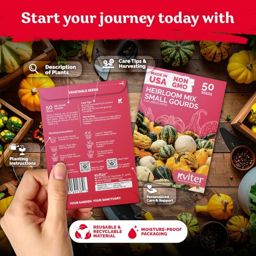 KVITER 50 Small Gourd Seeds Mix (Cucurbita Pepo) – Ornamental Fall Decor Gourds, Non GMO & Organic – Perfect Heirloom Seeds for Planting Decorative Gourds in Vegetable Garden