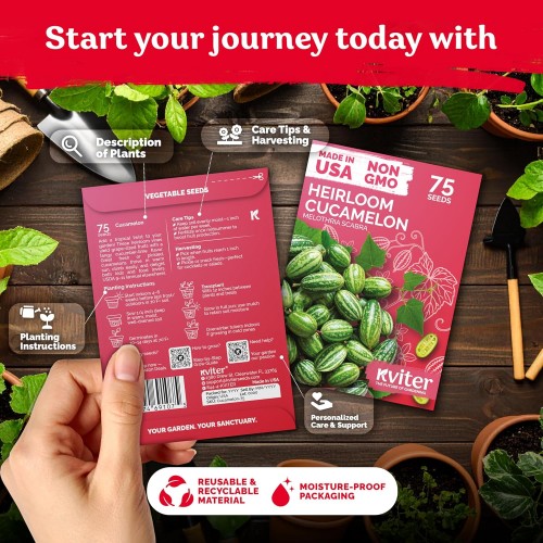 - Space‑Saving, High Yield: Compact cucamelon plants grow 40-50″ height & 4-6″ wide yet bear 100+ fruits – ideal for veggie seeds plots, indoor planting on bright windowsills, or hanging baskets in USDA Zones 9‑11 (tender perennial, but can be grown as annual elsewhere).
