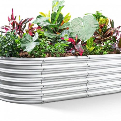 Land Guard 18“ Tall Outdoor Metal Raised Garden Bed, Oval Deep Root Planter Box for Vegetables, Flowers, Herbs, 89 Gallon Capacity – Cream Yellow