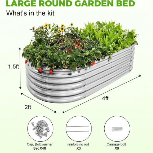 Land Guard 4×2×1.5ft Galvanized Raised Garden Bed Kit, Galvanized Planter Garden Boxes Outdoor, Oval Large Metal Raised Garden Bed for Vegetables……… (Classic Silver
