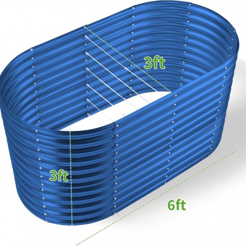 Land Guard 6x3x3ft Oval Galvanized Raised Garden Beds, Large-Capacity Metal Planter Box Outdoor, Durable Deep Raised Garden Bed 3ft Tall, Raised Beds for Gardening Vegetables, Royal Blue