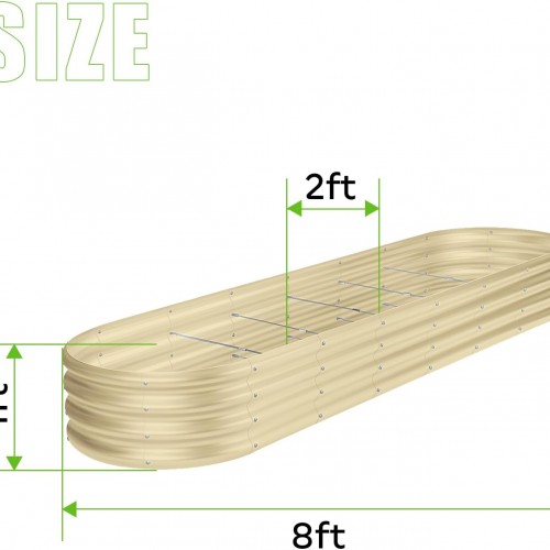 Land Guard 8×2×1ft Galvanized Raised Garden Bed Kit, 108 Gallon Capacity Raised Garden Boxes Outdoor, Oval Metal Raised Garden Beds for Vegetables, Cream Yellow(with 10 Connecting rods)