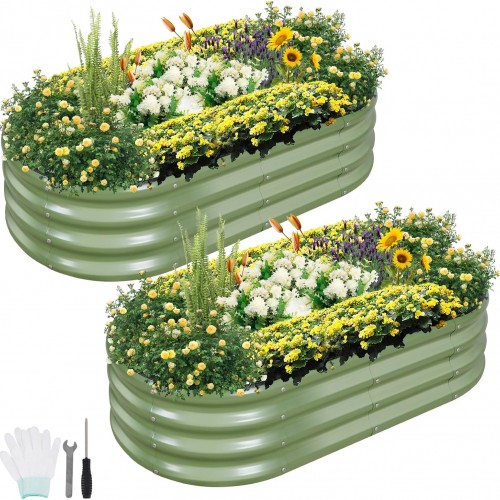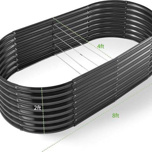 Land Guard Galvanized Raised Garden Bed, 8x4x2ft Planter Boxes Outdoor, Oval Larger Metal Planter Boxes for Vegetables, Fruits, Flowers (Grey)