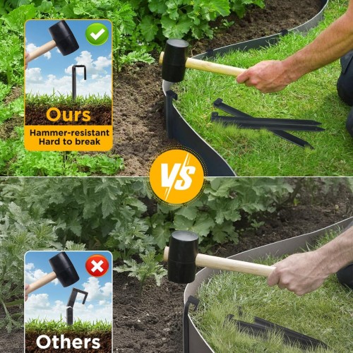 Landscape Edging Metal Stakes – 60 Pcs, 10 Inch Garden Landscape Stakes, High Carbon Steel Landscape Anchoring Stakes for Flowerbed Edging, Outdoor Tent and Landscape Edging Coil