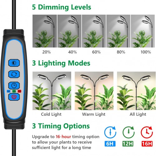 - Floor Standing Plant Light: The dual head grow light has a total of 168 LEDs, which can provide a wide range of light for plants; The adjustable bracket and flexible gooseneck can direct the light to every part of the plant.