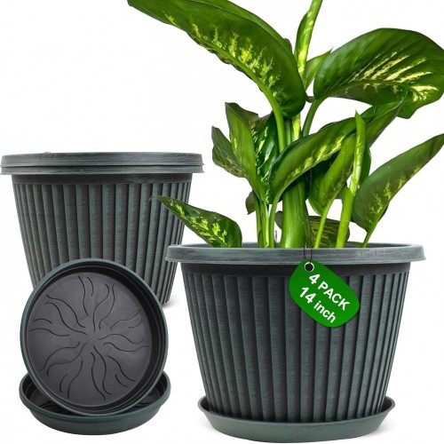 - 【MODERN STYLE PLANTERS】 Indoor planters with saucers provide a unique,nice style in ribbed design which gives an understated elegance that will enhance the beauty of your plant. These 12 inch plant pots are available in red-brown &blue-green & gold finished with a black antique stain. Plastic flower pots would be a beautiful addition to anyone’s deck or sunroom or house!