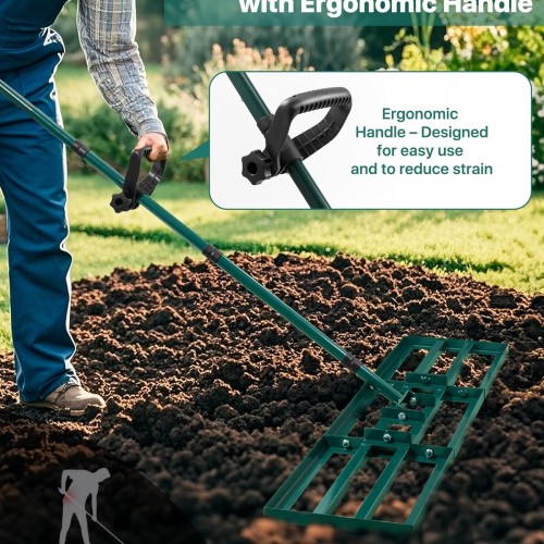 Lawn Leveling Rake 48×10”, Yard Leveling Rake with 78” Back-Saving Adjustable Handle, Stainless Steel Lawn Leveler Tool for Garden, Backyard, Farm, Golf Course