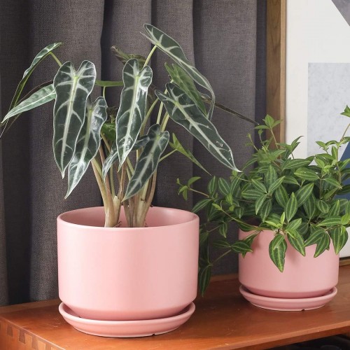 LE TAUCI Ceramic Plant Pots, 4.3+5.3+6.8 inch, Set of 3, Planters with Drainage Hole and Saucer, Indoor Flower Pot with Hole Mesh Pad, Gifts for Mom, Pink