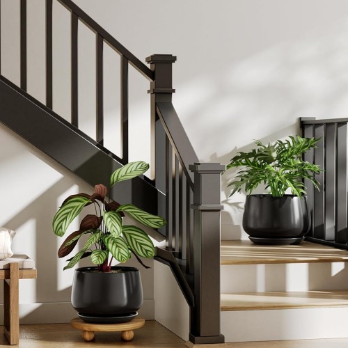LE TAUCI Ceramic Planter, 10 Inch Plant Pot with Drainage Hole & Saucer – Durable Indoor Planter for Modern Home Decor, Black