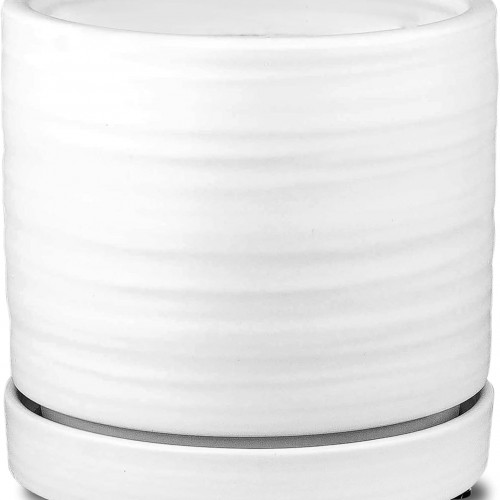 LE TAUCI Plant Pots, 4.1+5.1+6.5 inch, Set of 3, Ceramic Planters with Drainage Hole and Saucer, Indoor Flower Pot with Hole Mesh Pad, Gifts for Mom, Black