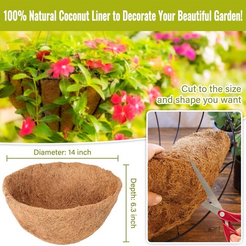 - Package Include: You will receive 3 pcs round coco fiber basket liner, each coir replacement liners is about 14 inches in diameter and 6.3 inches high, these liners are perfect for your flowers and plants and look nice when planted