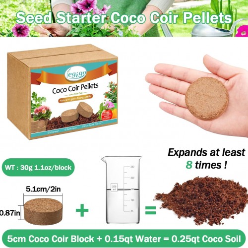 Legigo 50 Pcs 50mm Organic Coco Coir Pellets for Plants- Compressed Coconut Coir Potting Soil, Coco Fiber Pellets Coco Coir Soil for Planting, Garden, Bonsai, Herbs, Flower & Vegetables