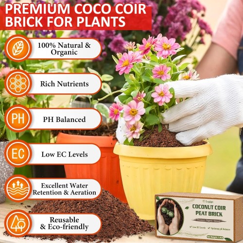 Legigo 8 Pack Coco Coir Bricks (11.2lb), 100% Organic Coconut Coir Fiber Potting Soil for Plants, Compressed Coco Peat Seed Starter, Coconut Husk Potting Mix for Indoor & Outdoor Plants, Gardening