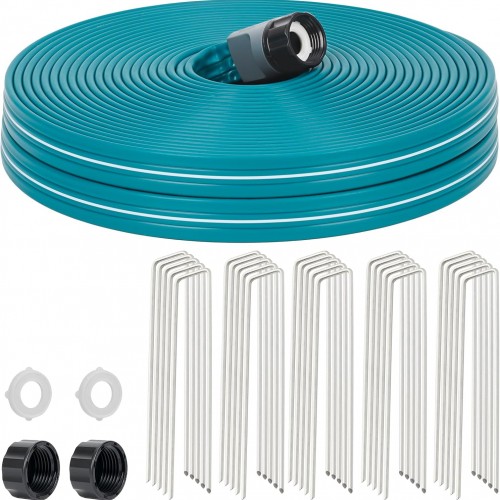 - High durability-This convenient hose has a long life, high tolerance, and UV protection. It also includes a removable end cap that can be used to add length and easy to flush out particulate debris, end caps design allows the sprinkler hose to connect to another hose, it waters gently and the lawn is looking better