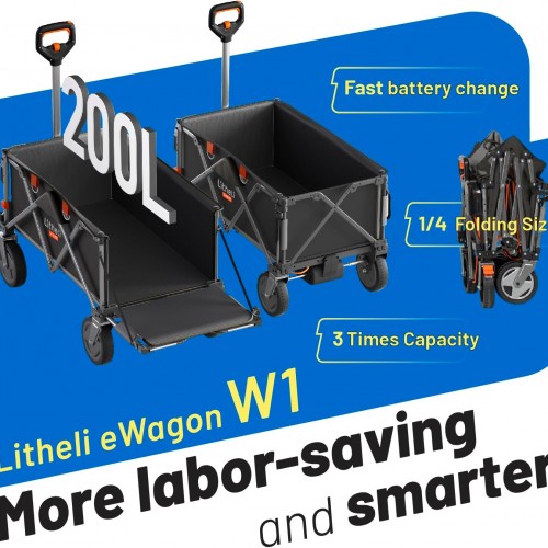 - 【Effortless Power Drive – Say Goodbye to Heavy Lifting】 Equipped with a robust 450W motor, this electric camping wagon effortlessly climbs slopes and tackles heavy loads—just press the button and let it roll. Whether you’re heading uphill to a campsite or across sandy beaches, the powerful motor does the work for you.