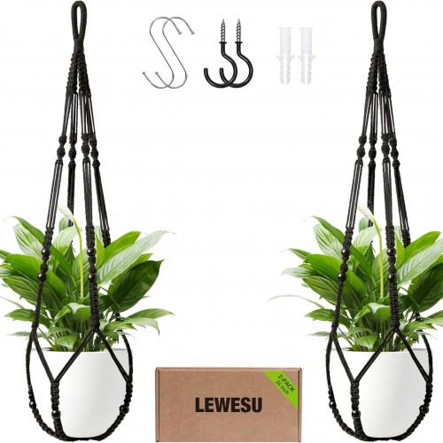 Macrame Plant Hanger Indoor Set of 4 with 8 Hooks, Indoor Outdoor Hanging Planter for Plants Holder with Decorative Wood Beads & No Tassels, Boho Home Decor, 35 Inch Ivory (Pots Not Included)