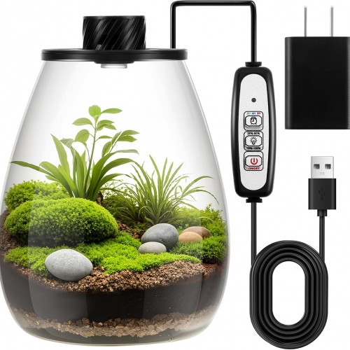 - What You Will Get: 1 terrarium glass, about 9.8 inches high; Aquarium light, about 5.9 inches in diameter; 1 adapter 5V2A, US two-pin plug