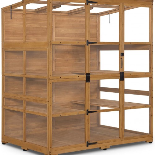 MCombo Wooden Greenhouse, Outdoor Greenhouse with Adjustable Roof Vent and 6 Lockable Door for Backyard/Outdoor Use, (48 x 38.8 x 83.9 Inches) 0851 (Natural)