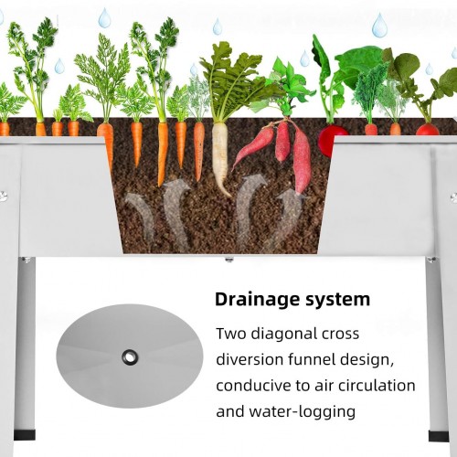 - Material: Made of stable galvanized steel raised garden bed with a rust-resistant and eco-friendly coating, not made of wood that may corrode.Able to stand the storm and heavy rain for year-round use.