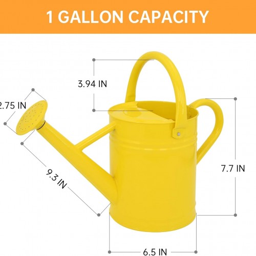 Metal Watering Can for Outdoor Plants, Galvanized Steel Watering Can with Removable spout, 1 Gallon,Perfect Home & Garden Décor Yellow