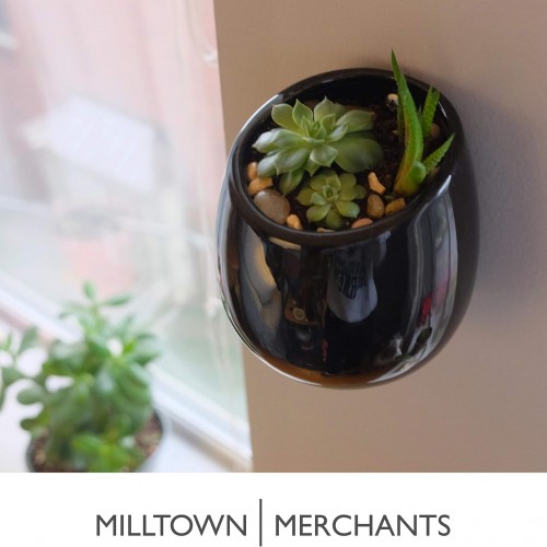 Milltown Merchants Succulent Wall Planter – Black Ceramic Mounted Vase – Plant Pot for Living Wall (1 Pack/Modern/Black)