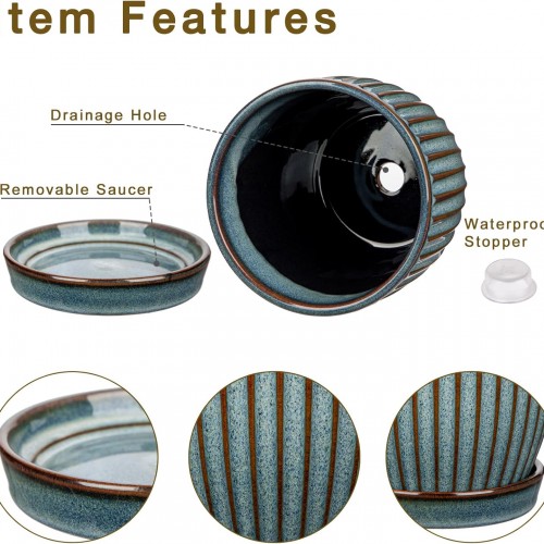 Oairse Ceramic Pots for Indoor Plants, 4.9 +5.7 inch Pots for Plants Set of 2 Marble Blue Plant Pots with Drainage Holes and Saucers Texture Ceramic Planters Indoor Outdoor Flower Pots for Succulent