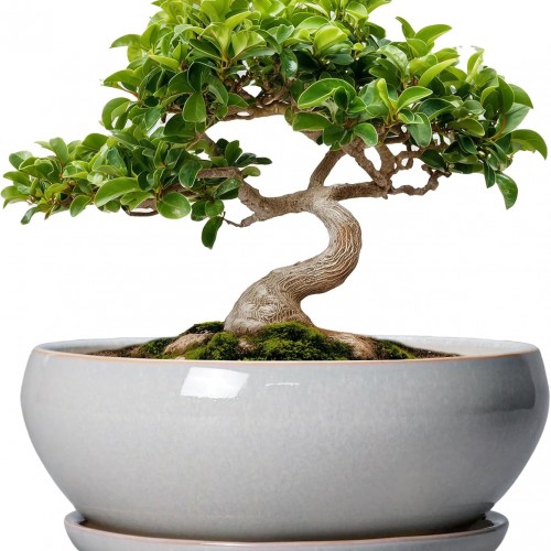 Oairse Ceramic Pots for Indoor Plants, 4.9 +5.7 inch Set of 2 Brown Plant Pots with Drainage Holes and Saucers Texture Ceramic Planters Indoor Outdoor Flower Planters for Succulent