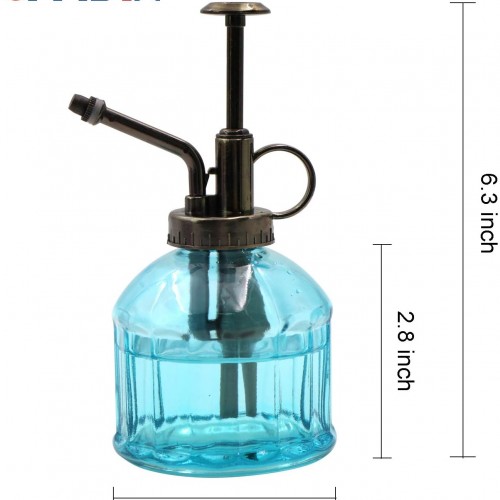 OFFIDIX Glass Spray Bottle,Flower Mister Watering Can Pot 6.3″ Tall Spritzer Bronze Plastic Top Pump One Hand Watering Can Indoor Plant Mister Spray Bottle for Garden, Plants, Cleaning